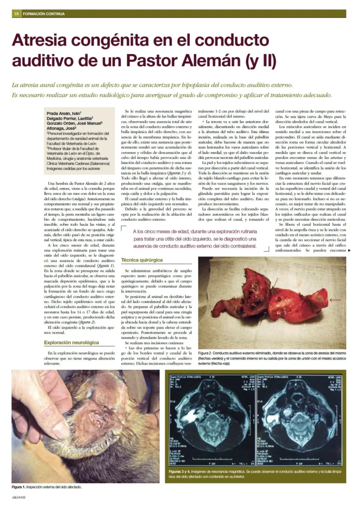 - Prada-Areán I., Delgado L., Gonzalo Orden JM, Altonaga J (2011): Atresia congénita en el conducto auditivo de un Pastor Alemán (II). Revista ARGOS; 132:18-20